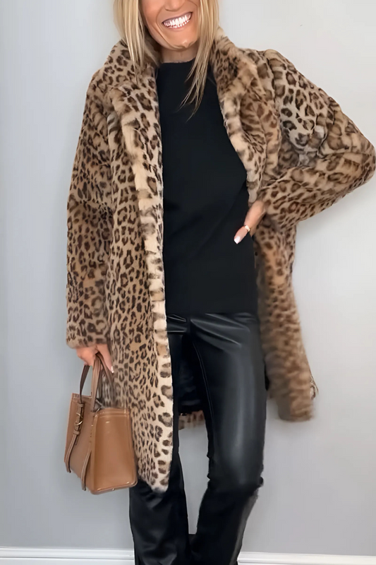 DIANA - Leopard Revers Kunstpelz Wintermantel